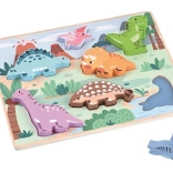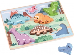 Scopri il divertente puzzle in legno con dinosauri che entusiasmerà ogni bambino a partire dai 12 mesi. Le figurine colorate e sorridenti sviluppano la motricità fine, il riconoscimento di forme e colori e il pensiero logico. La lavorazione in legno di qualità e la dimensione piacevole dei pezzi garantiscono un gioco sicuro e significativo.