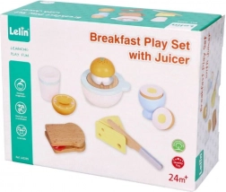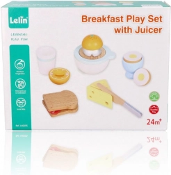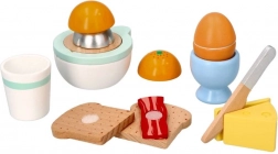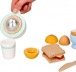 Set per la colazione in legno per piccoli chef che offre tutto per un gioco di cucina realistico – toast, uovo nel portauovo, formaggio, spremiagrumi manuale con arancia, tazzina e sicuro coltellino in legno. Dai 24 mesi, favorisce motricità fine, creatività e giochi di ruolo con una qualità resistente e durevole.