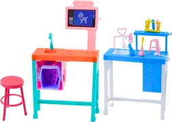 La clinica include un lavabo, uno sgabello e un computer per giochi realistici di esami e trattamenti per animali.