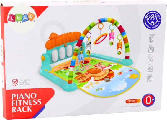 Tappetino colorato e morbido offre comfort e sicurezza durante il gioco. Il bambino può colpire con i piedi il pianoforte posizionato alla base del tappetino, che emette suoni allegri, oppure suonare il pianoforte con le mani per sviluppare i muscoli e la coordinazione delle mani e degli occhi. Sopra il tappetino c'è un arco con giocattoli che può essere afferrato e scosso, supportando la vista e il tatto del bambino.