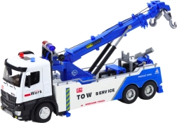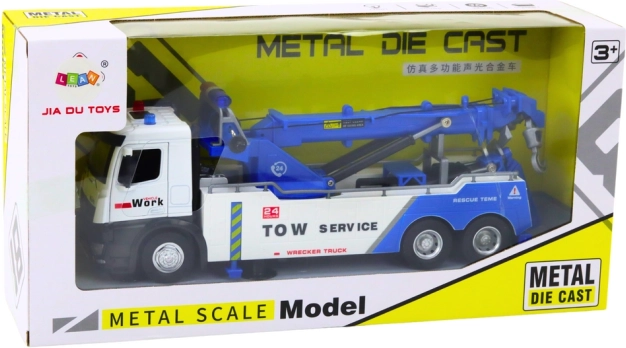 La cabina della gru è realizzata in metallo, aumentando la sua durata e l'aspetto autentico. La robustezza e il senso dei dettagli si riflettono anche nelle ruote in gomma, che garantiscono un'ottima aderenza alle superfici. Grazie alla trazione, la gru si muove in avanti con una leggera pressione, accentuando la dinamicità del gioco.