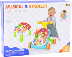 - Pannello musicale: Piccoli pianoforti situati sulla parte inferiore del tavolo insegnano le basi della musica, mentre le melodie allegre mantengono il bambino motivato durante l'apprendimento a camminare.