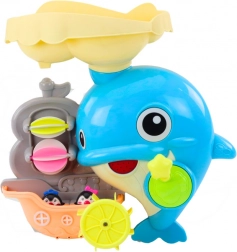 Aggiungi gioco e gioia al bagno del bambino con il nostro Delfino Blu! Il set include un delfino blu che si attiva versandogli acqua, facendo muovere le sue parti, offrendo un intrattenimento affascinante e sviluppo della coordinazione per il bambino. Inoltre, il set include una barca con pinguini e due mestoli per acqua, che permettono un facile riempimento d'acqua e diversi modi di gioco.
