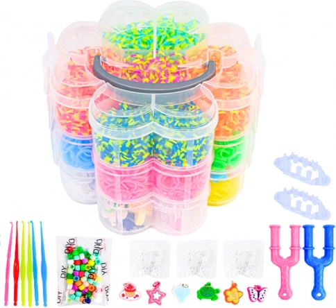 Il set creativo di elastici per la creazione di braccialetti e altri oggetti unici permette a ogni bambino di diventare designer e visionario della moda. Gli elastici multicolore offrono la possibilità di creare braccialetti semplici di un solo colore o progetti complessi multicolore. Le perline aggiungono a ogni progetto un fascino unico, permettendo di creare modelli elaborati ed eleganti.