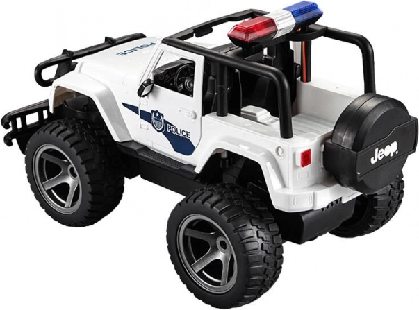 Grazie al telecomando incluso, guidare la Jeep diventa un gioco. La connessione alla frequenza di 2,4 GHz assicura una trasmissione del segnale stabile fino a una distanza di 25 metri. Il telecomando consente una guida fluida avanti, indietro, a sinistra e a destra.