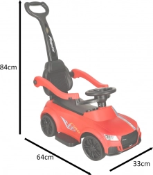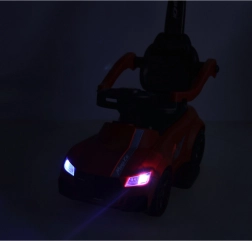Pronti, partenza, via! Questa macchinina rossa per bambini dai 12 mesi è ideale sia per le prime corse autonome sia per le passeggiate con i genitori. Luci integrate ed effetti sonori (alimentati da 3× AA) aggiungono brio, mentre il sedile confortevole con schienale e sponde laterali dona sicurezza ai piccoli guidatori.