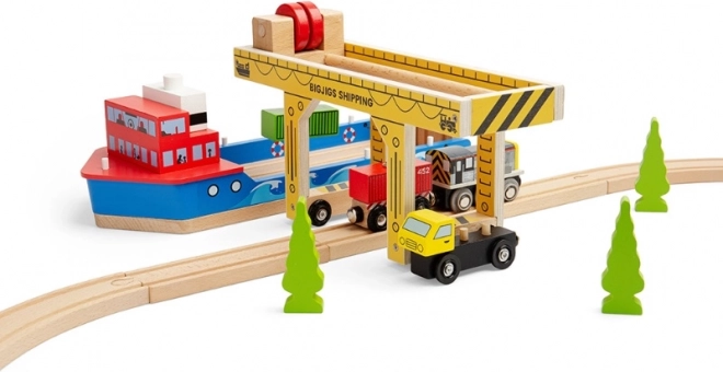 Inclusi container, vagone merci e dettagli realistici. Si combina perfettamente con i binari e gli altri accessori BIGJIGS.