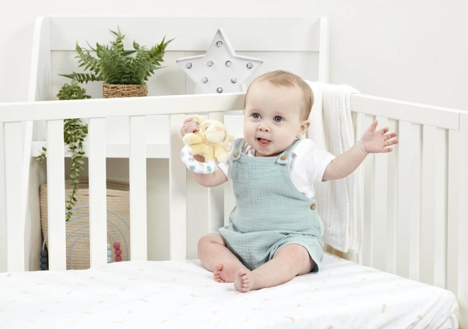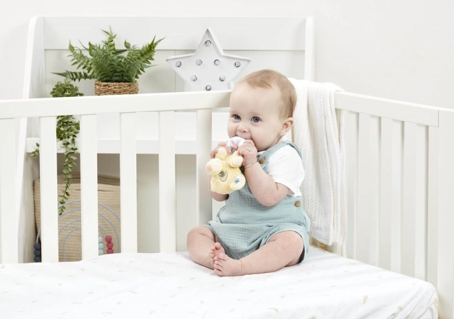 Il peluche soffice, la palette di colori naturali e le dimensioni compatte rendono il sonaglino il primo giocattolo ideale.