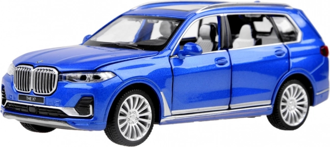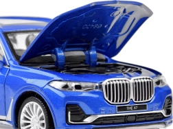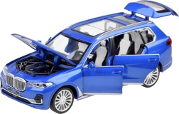 Realistico modellino in metallo di SUV BMW X7 in scala 1:32 che farà felice ogni piccolo pilota. Offre porte, cofano e bagagliaio apribili, effetti luminosi e sonori, ruote in gomma e retromarcia a molla (pull-back) per una guida scattante. Carrozzeria in metallo di qualità e lavorazione accurata garantiscono resistenza e un aspetto eccellente.
