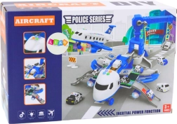 Una volta aperto, l'aereo si trasforma in una stazione di polizia mobile, da cui partono tre veicoli d'intervento in metallo. Sul tetto c'è una piattaforma speciale che, premendo un pulsante, “spara” l'auto della polizia per un intervento rapido. Inclusi segnali stradali, coni e alberi per creare scenari personalizzati. La gru girevole a 360° e la piattaforma elevatrice azionata da una rotellina aggiungono ulteriori possibilità di gioco.