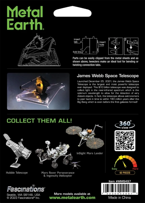 Set per creare un affascinante modello 3D in metallo. Assemblare il puzzle METAL EARTH richiede pazienza e manualità. Tuttavia, il risultato ripaga pienamente lo sforzo. Le miniature sono una decorazione suggestiva e accattivante. Da fogli quadrati di acciaio prenderanno forma, sotto le tue mani, modelli dettagliati e affascinanti. L’aspetto autentico dei puzzle 3D METAL EARTH è ottenuto grazie all’incisione laser dettagliata. Attrezzi non inclusi nella confezione. PROCEDURA DI LAVORO: Rimuovi i singoli pezzi dai fogli metallici; se necessario, usa una piccola tronchesina (non inclusa). I pezzi si collegano tra loro tramite fermi composti da una linguetta e un foro. Piega la linguetta con una piccola pinza a becchi sottili (non inclusa) e unisci progressivamente tutti i fermi fino a ottenere un pezzo magistrale dall’aspetto molto realistico! Dimensioni del puzzle assemblato ca. 10,5 x 7 x 7