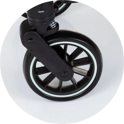 Ruote ammortizzate a sgancio rapido garantiscono una facile manovrabilità su terreni diversi.