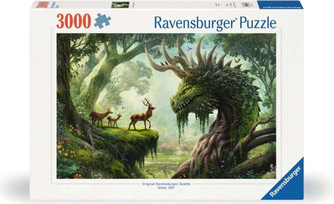 Il puzzle raffigura una straordinaria scena di una foresta fantasy con un drago e cervi, offrendo un'esperienza unica e un piacere visivo.