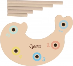 Posizionate i pesciolini pescati sui pioli in base a colori, motivi o numero di fori. Il gioco stimola il pensiero logico e le prime operazioni.