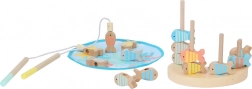 Il set include tutto il necessario per giocare subito: pesciolini, 2 canne, tappetino da gioco “laghetto” e figurina basculante. Sicuro, resistente e piacevole al tatto grazie al legno naturale e alla finitura levigata.