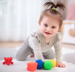 Ogni pallina ha una superficie unica che stimola il tatto e motiva i bambini a esplorare, schiacciare e afferrare.