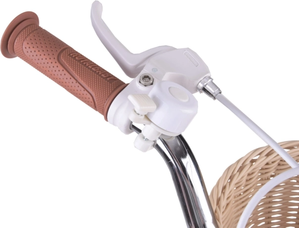 Il design in stile retrò è completato da un cestino intrecciato, dettagli marroni e un carter catena con motivo ad ali di cigno. Per una maggiore visibilità, la bici è dotata di catadiottri anteriori, posteriori e sulle ruote, parafanghi e campanello. Sono inclusi anche asta di guida per i genitori e rotelle ausiliarie ampiamente distanziate per la massima stabilità.