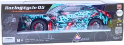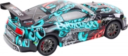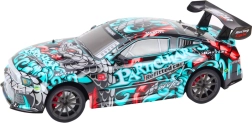 Stiloso design graffiti in colore nero e turchese dona all'auto un aspetto moderno ispirato alle vere auto da corsa.