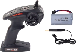 L'auto funziona con una batteria da 7.4V inclusa nel pacchetto, con caricabatterie incluso. Il telecomando è alimentato da due batterie da 1.5V AA, non incluse nel pacchetto.