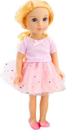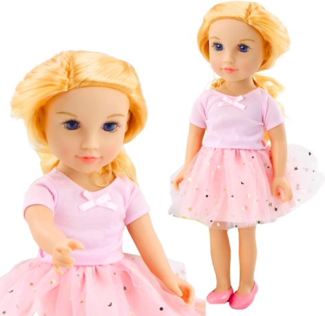 Gli splendidi abiti con gonna in tulle, decorati con stelle dorate, conferiscono alla bambola un aspetto fiabesco, pronto per qualsiasi occasione speciale. I dettagli e i materiali di alta qualità assicurano un tocco piacevole e una facile manipolazione, facilitando il gioco e lo sviluppo della coordinazione infantile.