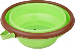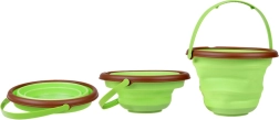 Il secchiello si ripiega in una forma piatta alta circa 5 cm, così entra facilmente nello zaino o nel passeggino. Soluzione ideale per gite, vacanze e case di piccole dimensioni.
