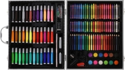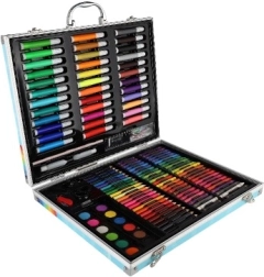 150 pezzi di diversi accessori artistici inclusi pennarelli, matite colorate e colori, accuratamente organizzati per un facile accesso alla creazione.