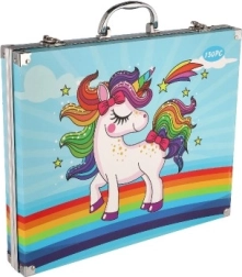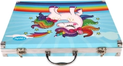 Questa valigetta attira con il suo design allegro con unicorno, dalla criniera e coda arcobaleno, rendendolo ideale per piccoli artisti.