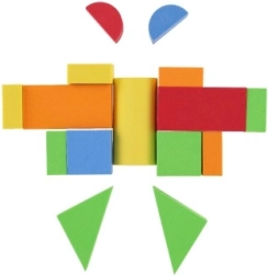 Questo set di costruzioni in schiuma contiene 29 pezzi che stimolano il gioco creativo e lo sviluppo della percezione spaziale. I blocchi sono leggeri e facili da maneggiare, ideali per le piccole mani.