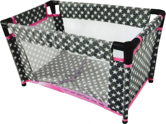 Elegante lettino per bambole per bambini in una combinazione di grigio, bianco e rosa con motivo a stelline: un accessorio perfetto per la cameretta. Il telaio stabile in tubi di alluminio con giunti in plastica e le sponde in rete garantiscono un gioco sicuro e realistico. Inclusa morbida biancheria da letto per il massimo comfort della bambola.