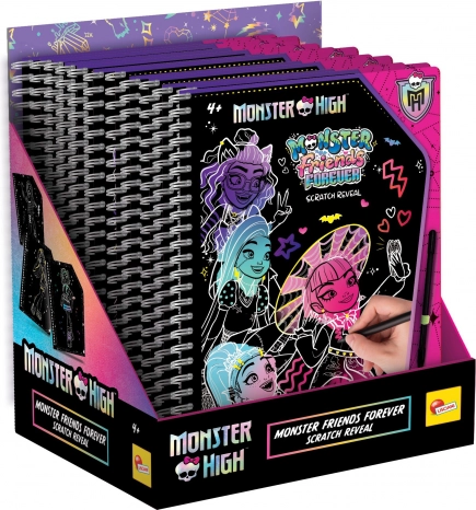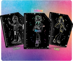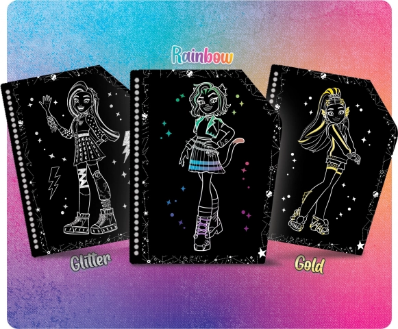 Scopri il magico mondo di MONSTER HIGH con l’album da grattare che, una volta rimossa la superficie nera, rivela effetti dorati, brillanti e arcobaleno. Ideale per un divertimento creativo a casa e in viaggio – il blocco contiene 44 pagine piene di fantasia.