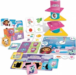 Le tavole tematiche e le illustrazioni tratte da La casa delle bambole di Gabby motivano i bambini a scoprire numeri, oggetti e semplici regole durante il gioco.