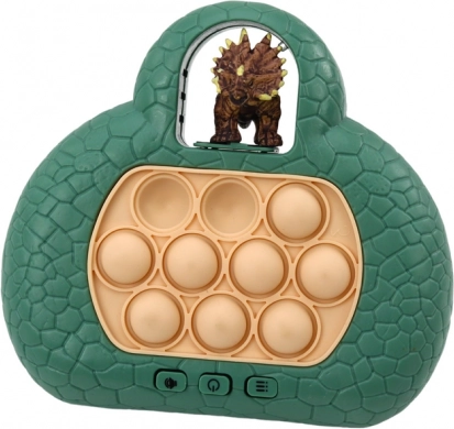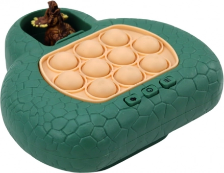 Il dinosauro Pop It è un gioco elettronico intelligente che combina le popolari bolle da schiacciare con una sfida di memoria. I bambini seguono le sequenze di luci e devono premere le “bolle” corrispondenti nel giusto ordine. In modo divertente esercitano memoria, concentrazione e coordinazione occhio–mano.