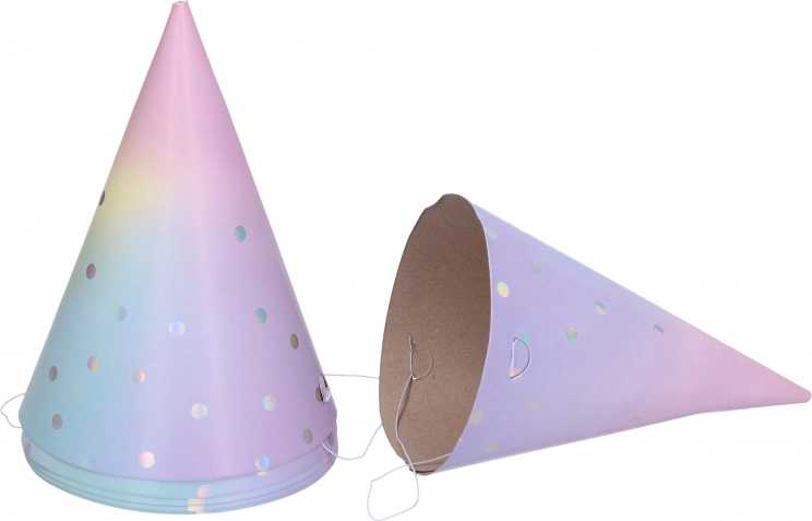 I nostri cappellini da festa pastello portano gioia e allegria alla tua celebrazione. Ogni confezione contiene sei pezzi di 15 cm, ideale sia per bambini che per adulti. I cappellini sono realizzati in carta di qualite0, leggera e confortevole da indossare. Grazie al loro design pastello, sono adatti a diverse feste a tema e donano un'atmosfera unica.