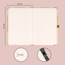 All’interno trovi 172 pagine su carta gialla di qualità, ideale per la scrittura di ogni giorno. Il quaderno è perfetto come diario, per note di lavoro, pianificazione e idee creative. La tasca interna accoglie piccoli oggetti, biglietti da visita o adesivi.