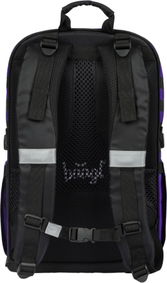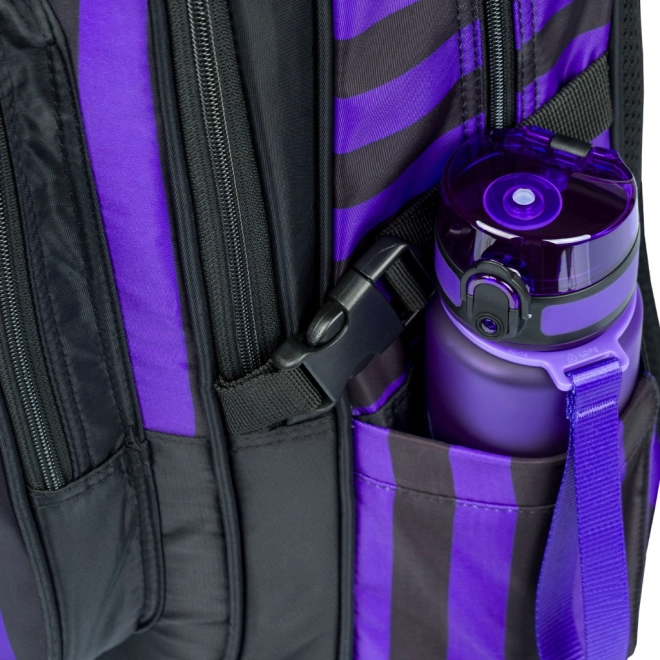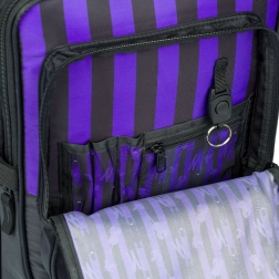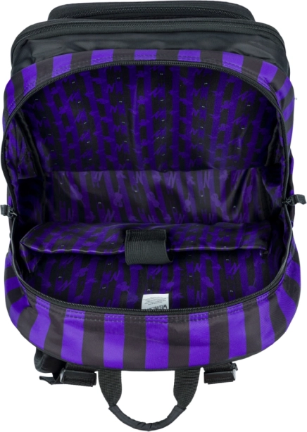 Lo zaino scolastico CUBIC WEDNESDAY combina un design deciso a righe nero‑viola con un’ergonomia ben studiata per il comfort quotidiano. Grazie agli spallacci, alla cintura pettorale e alle cinghie di compressione laterali completamente regolabili, lo zaino si adatta facilmente alla corporatura, mentre lo schienale traspirante facilita il trasporto anche a pieno carico.