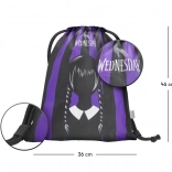 Sacca zaino leggera e pratica con l’iconico motivo Wednesday, perfetta per completare ogni outfit per il tempo libero. Grazie al materiale resistente e di facile manutenzione è adatta all’uso quotidiano – per la scuola, la palestra e le gite.