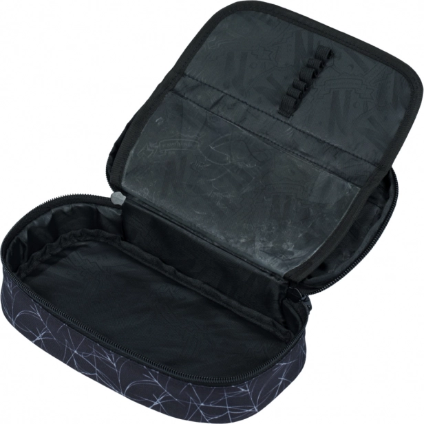 Grazie all'intelligente organizzazione interna avrai matite, penne, gomma e piccoli accessori sempre disposti in modo ordinato. I dettagli di stile e la finitura nero profondo con motivo Nevermore completano perfettamente il corredo scolastico.