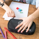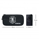 L'astuccio nero con emblema e scritta Wednesday colpisce per l'aspetto originale e i dettagli curati che valorizzano il tuo stile a scuola e in viaggio.