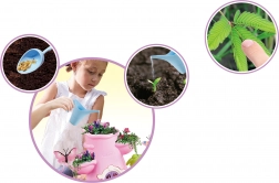 - Set completo: casetta, vaso, terra, semi, attrezzi da giardinaggio, annaffiatoio, 2× farfallina e set da esterno per sedersi.