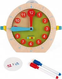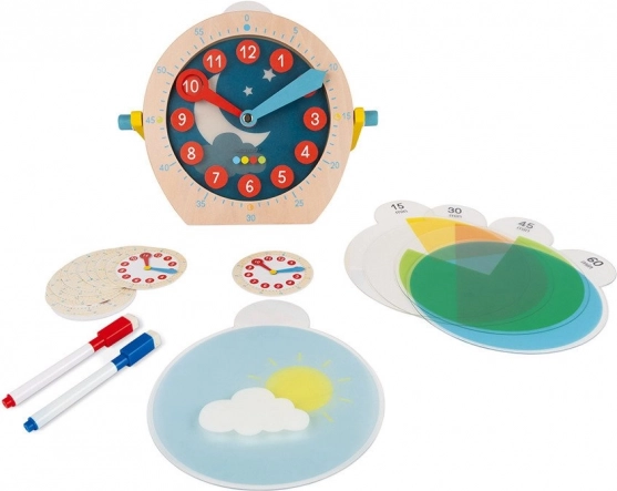 - Orologio in legno, 14 schede cancellabili, 2 pennarelli colorati