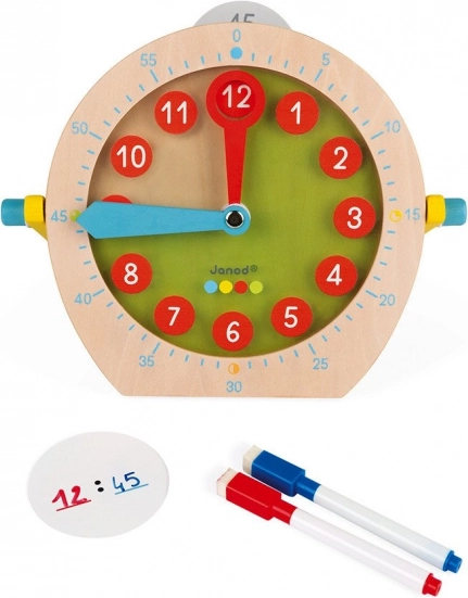 Scoprite un modo divertente per insegnare ai bambini a leggere l’ora: orologio in legno JANOD con schede cancellabili e due pennarelli. Grazie ai numeri ben visibili, alle lancette regolabili in modo fluido e alle pratiche schede per gli appunti, i bambini allenano in modo ludico la lettura dell’ora, la percezione del tempo e la motricità fine. Il set include in totale 14 schede e 2 pennarelli. Orologio didattico per bambini dai 3 anni, lancette regolabili con movimento fluido, schede cancellabili per un uso ripetuto.