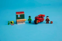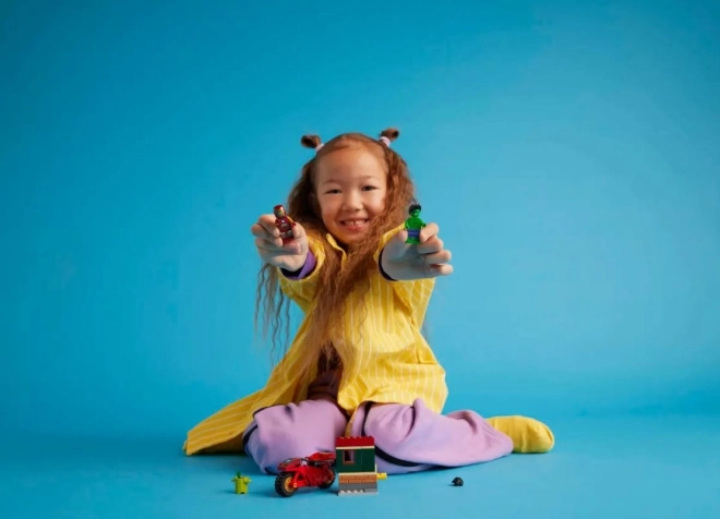 - Accessori d’azione: moto rossa, piccola costruzione con funzione di crollo e elementi a tema