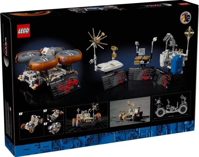 Costruisci l’iconico veicolo lunare LRV e rivivi i momenti clou della missione NASA Apollo 17. Il modello è curato nei minimi dettagli: dai sedili e gli strumenti al sistema a batterie con riscaldamento e raffreddamento fino alla telecamera TV con antenne e al modulo di comunicazione. Tre set aggiuntivi di equipaggiamento si fissano direttamente al rover per completarlo con autentici strumenti scientifici.