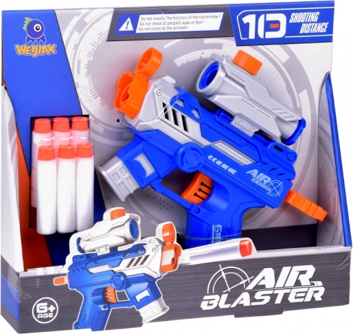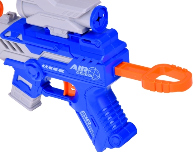 Air Blaster è dotata di un bersaglio removibile che permette di mirare con precisione ogni colpo. La forma ergonomica assicura che la pistola si adatti perfettamente a ogni mano e, grazie al suo design moderno, cattura l'attenzione di ogni bambino.