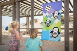 Trasformate il giardino, il parco giochi o il parco in un’arena piena di risate e movimento. Il colorato telo con pinguini si fissa facilmente con corde a un albero o a una struttura e i bambini possono iniziare a lanciare i morbidi “pesci” nei fori predisposti. Il gioco sviluppa naturalmente precisione, pazienza e collaborazione di squadra.