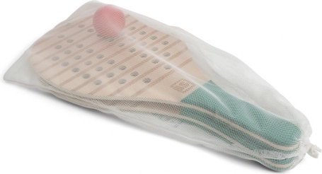 Due racchette in legno in una pratica custodia e una pallina in gomma: basta aprire la confezione e puoi giocare in cortile, al parco o in spiaggia.