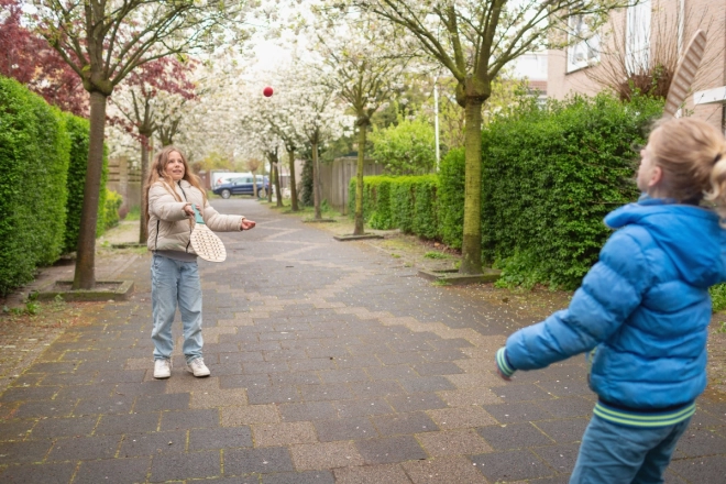 Questo set di racchette in legno è perfetto per partite improvvisate in giardino, al parco o in spiaggia. Grazie all’impugnatura confortevole le racchette si tengono bene in mano e la pallina, con rimbalzo ideale, assicura scambi prolungati e tanto divertimento per principianti e giocatori esperti.