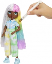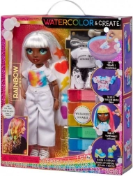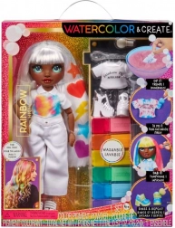 Scopri un mondo di colori con la bambola creativa RAINBOW HIGH Watercolor & Create. Versa la polvere nell’acqua, immergi i capelli o l’outfit e crea motivi originali con la spugnetta. Usa gli elastici per il tie-dye e ottieni un look streetwear unico. I colori sono lavabili, così puoi cambiare stile tutte le volte che vuoi.