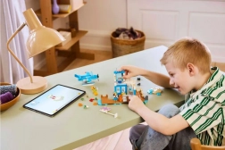 Le istruzioni 3D permettono di ingrandire e ruotare il modello. Inoltre, i bambini possono personalizzare la bandiera dell’aeroporto con i pezzi extra.