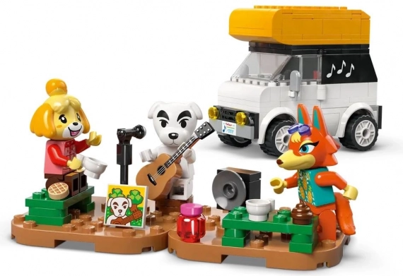 Porta nella realtà i momenti iconici di ANIMAL CROSSING. I bambini costruiscono la piazza con torre dell'orologio, caffetteria e municipio, preparano il palco per K.K., si uniscono a Isabelle per uno stretching di gruppo e con Audie si concedono qualcosa di buono in caffetteria. Il camper abitabile si apre per far pernottare K.K., e l'albero nasconde una sorpresa, proprio come nel gioco.